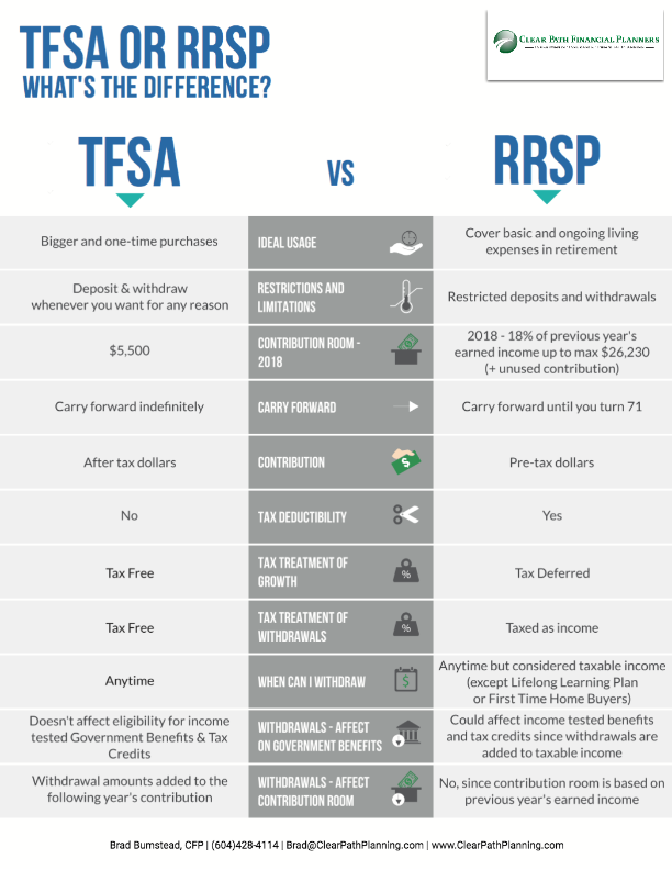 - You can enjoy tax free withdrawals from your TFSA due to the fact that you make your contributions after you have paid tax, whereas the opposite is true for withdrawals from your RRSP (except in the case of lifelong learning plan and home buyers’ plan)